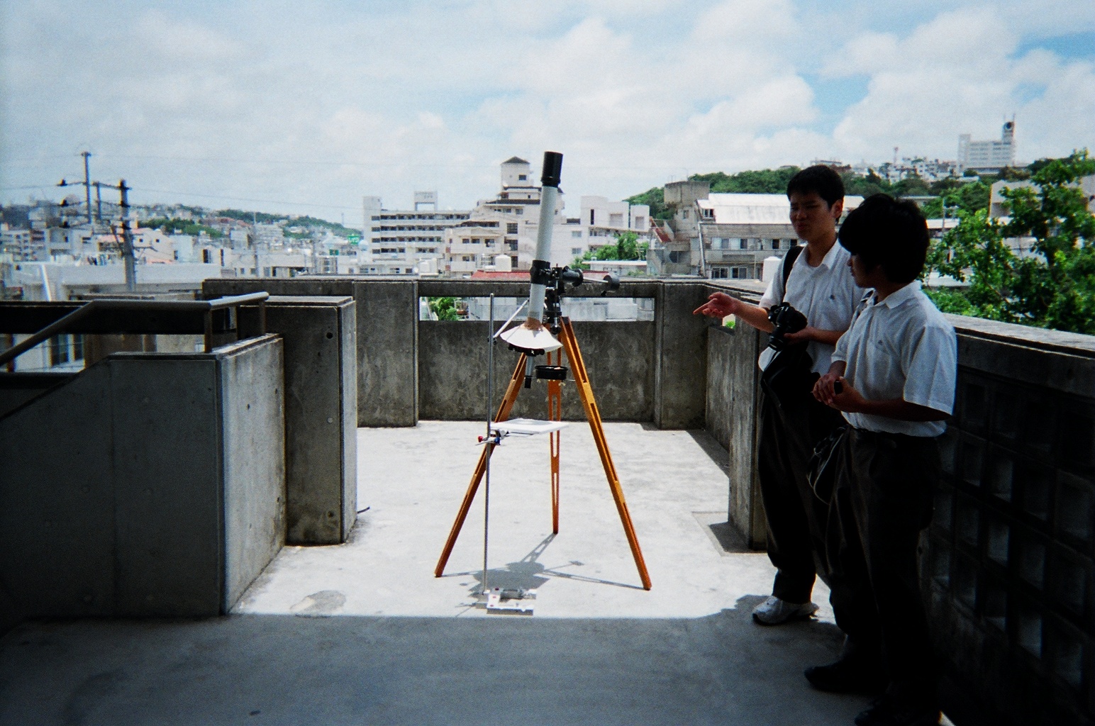 望遠鏡は口径8cmで、接眼レンズの下に白紙を置き、 そこに太陽を映し観測した。食の始まり(9時32分)から食の終わり(12時20分)まで観測した。