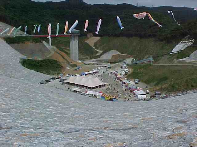 「鯉のぼり祭り」が羽地ダムの湖底で行われる(ゴールデンウィーク期間中)事を新聞で知り、こどもの日に出かける。多くの見物客でごった返していた。いざ、湖底へ、このダムの高低差は約70mあるらしい。あと、数ヶ月で湖底は見ることが出来なくなる。今度は、水が貯水されたときに見に来ることにしよう。