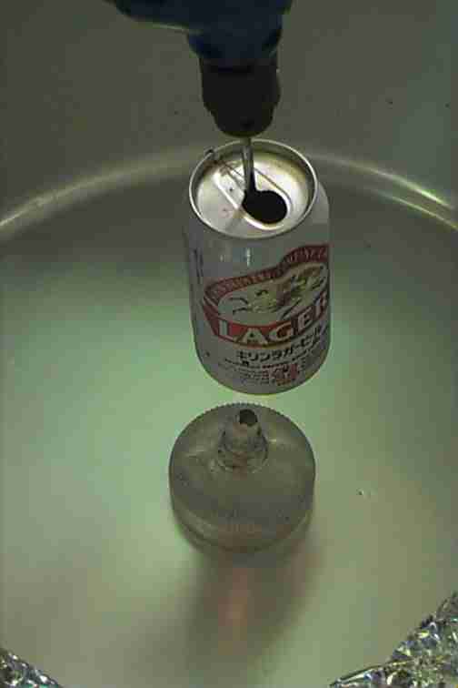 電気ドリル、ビール缶、スタンド、たらい、ザラメ、アルコールランプ。